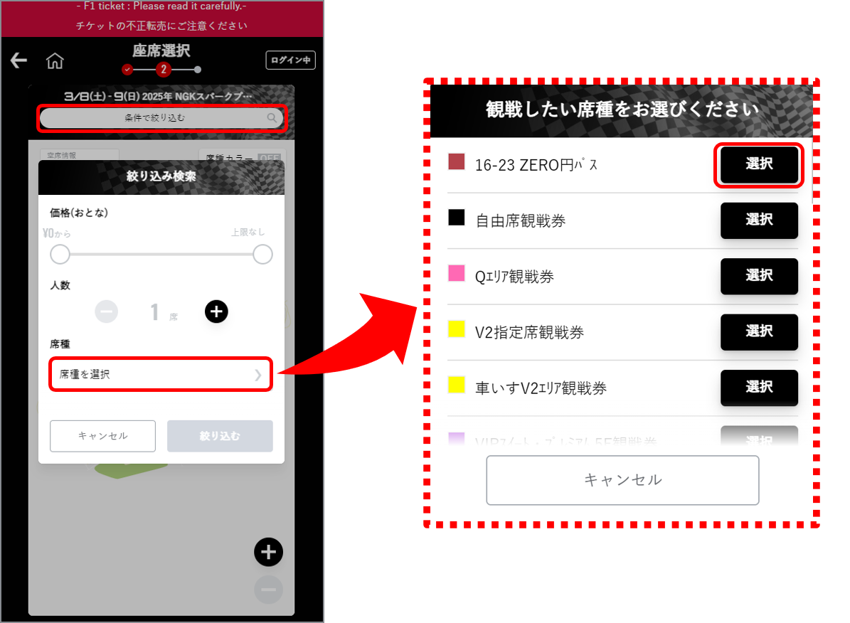 * After completing your application, please log in and check your e-ticket from [MENU] → [My Ticket] → [Spectator Ticket].