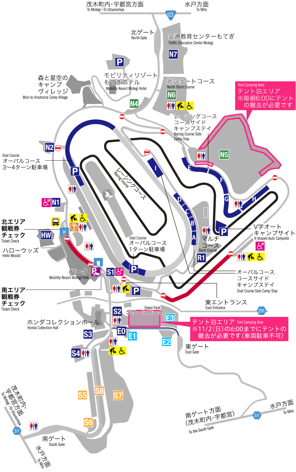 S1, S2, S3, S4, E0, East Entrance, Oval Course, Oval Course Course-Side Camp Stay Area