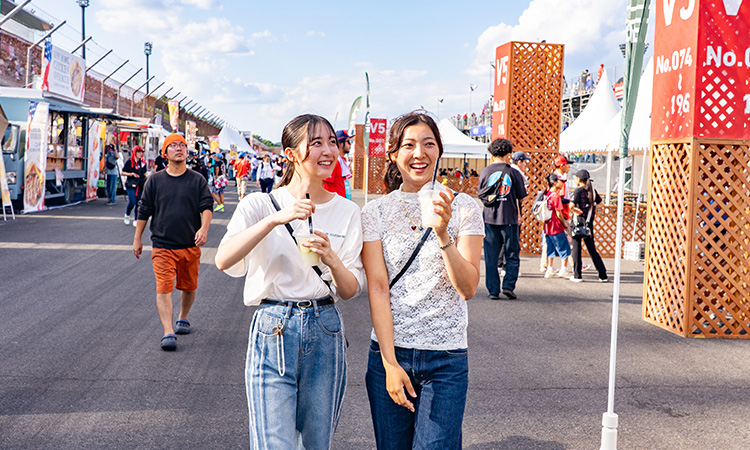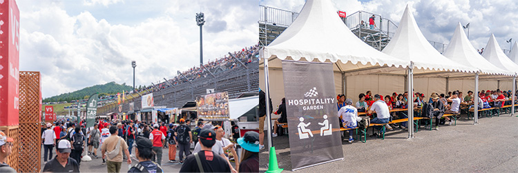 The "Victory Stand" offers thrilling views and sounds from the exit of the final corner to the braking at the first corner. Near the stand, various gourmet kitchen cars line up, and the "Hospitality Garden" with a covered rest area is also available.