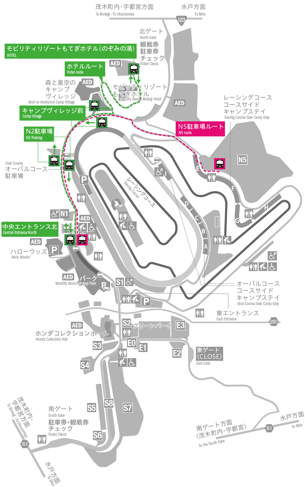 - 指定停車場請從各南大門的專用車道進入。